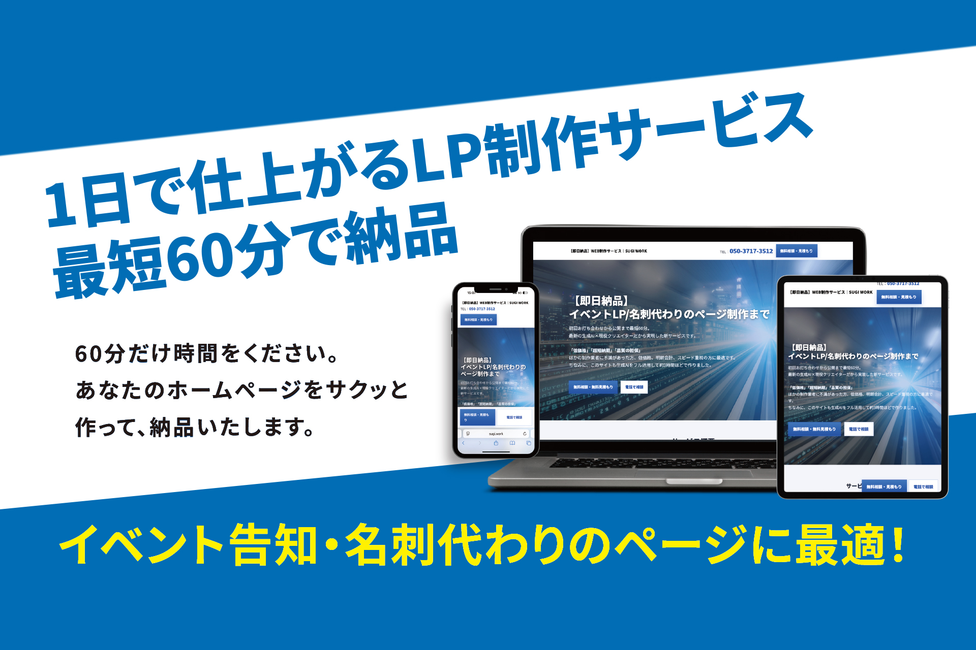 生成AI × SUGI WORKの取材力をかけ合わせ、60分間に取材しながらLP(ランディングページ)を8割完成まで仕上げます。